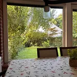 Bij dit appartement kunnen gasten gebruik maken van self-catering voorzieningen, waaronder een ingerichte kitchenette, en genieten van hun maaltijden in een eetgedeelte en een eethoek buiten.